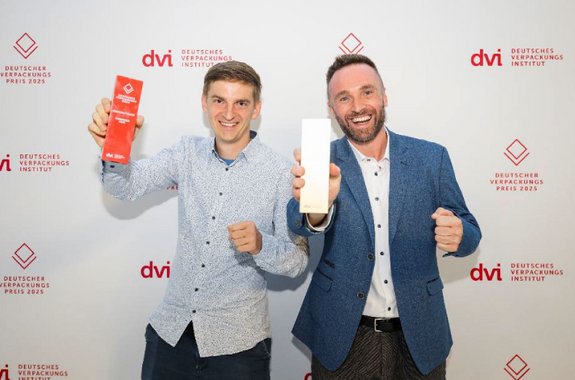 Bereits im Juli 2025 wurde die PP-Monomaterialverpackung für RTD Kaffee der Molkerei Gropper GmbH & Co. KG von der Jury mit dem Verpackungspreis in der Kategorie Nachhaltigkeit / Recyclingfähigkeit ausgezeichnet. Am 23. September erhielt sie nun auch den Gold-Award. Daniel Reichenbach, Leiter Verpackungsentwicklung bei der Molkerei Gropper und Verpackungsentwickler Philipp Fieger nahmen den Preis entgegen.